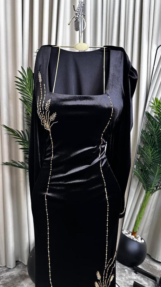 فستان ميدي فخم باللون الأسود المخمل، تصميم ضيق وأنيق يعانق الجسم مع تطريزات دقيقة تزيده فخامة وأناقة. يناسب السهرات الرسمية والمناسبات الخاصة لمن تبحث عن إطلالة راقية ومميزة.